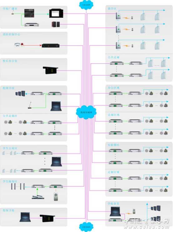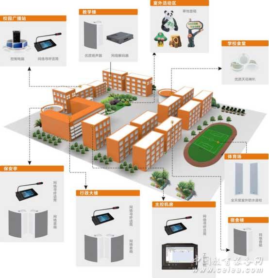 目前,校園數字IP廣播系統是針對校園教學與管理方面的應用需求設計的基于純數字P網絡傳輸的語音綜合解決方案。方案基于CP/IP網絡通信協議和數字音頻技術,與現在nternet融為一體。不僅可以廣播、直播、點播,更以更強的功能、更好的音質、更可靠的系統、更簡單的安裝,被各類大中型學校所應用。突破了傳統廣播的局限性。