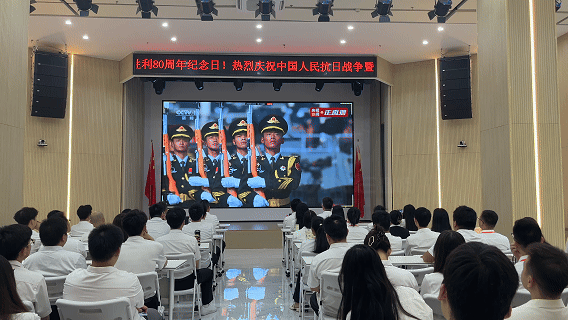 為銘記中國人民抗日戰爭暨世界反法西斯戰爭勝利的偉大勝利,弘揚愛國主義精神,2025年9月3日,音橋控股在廣州總部報告廳,隆重組織全體員工集中觀看九三閱兵儀式,并與全國各地辦事處實時連線,共同通過大屏幕直播同步收看。