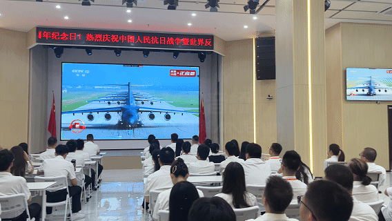 此次參閱的所有武器裝備,都是從各軍兵種作戰部隊當中遴選和抽組的現役裝備,它們不僅展現了我國國防力量的現代化水平,更彰顯了守護國家主權與發展利益的堅強意志。強國強軍的壯麗圖景,令全體員工心潮澎湃、倍感振奮,會場響起陣陣掌聲與贊嘆, 大家神情專注,感受偉大抗戰精神與和平力量的同時,共同見證著這一歷史性時刻。