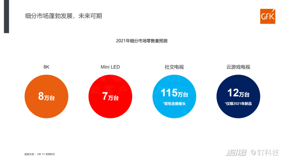 那么就新型顯示技術誰更強,目前來看,OLED已經取得了較為有利位置,在高端市場的地位比較穩固。激光電視則處于規模爆發的關鍵節點,正在向百萬銷量規模快速挺進;Mini LED電視的市場勢能很強,入局品牌也越來越多,但2021年還只是起步期,真正大規模市場滲透還需要一定的時間。