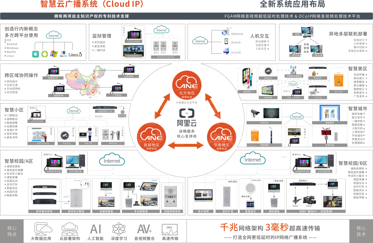 擁有自主知識產權的專利技術支撐 :FGAM網絡音視頻超低延時處理技術及基于DcoIP網絡音視頻處理技術平臺,全新系統應用布局,基于大數據應用、系統擁有深度學習能力、采用云部署結構將音視頻整合、同時擁有人工智能的高科技應用,3毫秒超高速傳輸!
