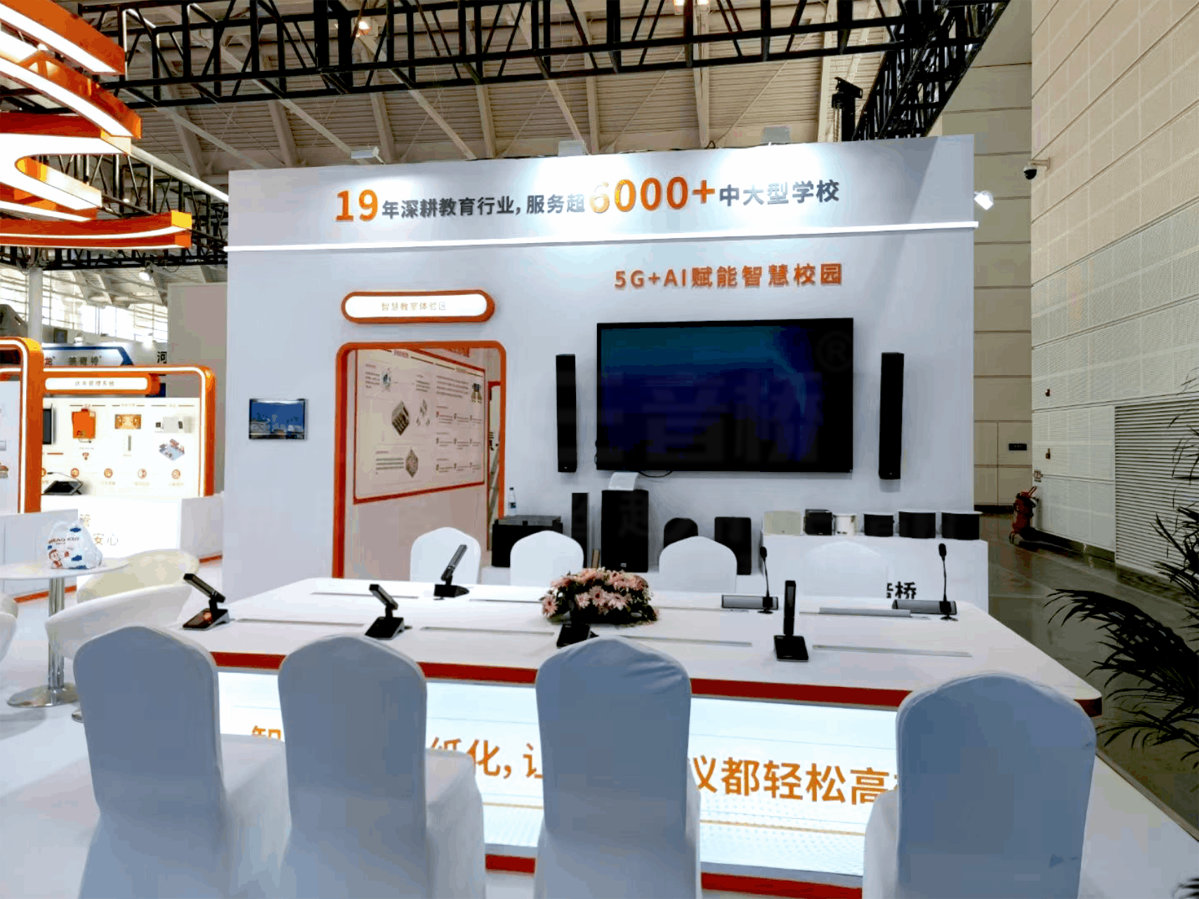 本次展會,音橋控股以模擬智慧教室體驗區為主軸,全面展示了云架構廣播系統、高清錄播系統、會議無紙化系統、校園防霸凌系統等明星產品及整體解決方案,為現場觀眾呈現了一個真實、可落地、可拓展的智慧校園樣板。
