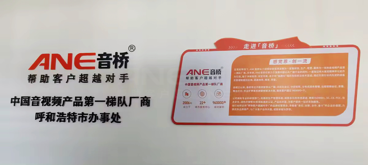 18年深耕音視頻行業(yè),音橋憑借持續(xù)的技術(shù)研發(fā)和優(yōu)質(zhì)的產(chǎn)品服務(wù),榮獲“十佳音視頻集成設(shè)備供應(yīng)商”、“公共廣播十大品牌”、“十佳創(chuàng)新企業(yè)品牌”等榮譽稱號。呼和浩特辦事處的喬遷,是我們擴(kuò)大提供優(yōu)質(zhì)產(chǎn)品及服務(wù)范圍的重要一步,我們將持續(xù)為各行業(yè)領(lǐng)域賦能,為用戶提供從需求分析到方案設(shè)計,再到實施部署的一站式、定制化音視頻整體解決方案,以滿足不同客戶的具體需求。