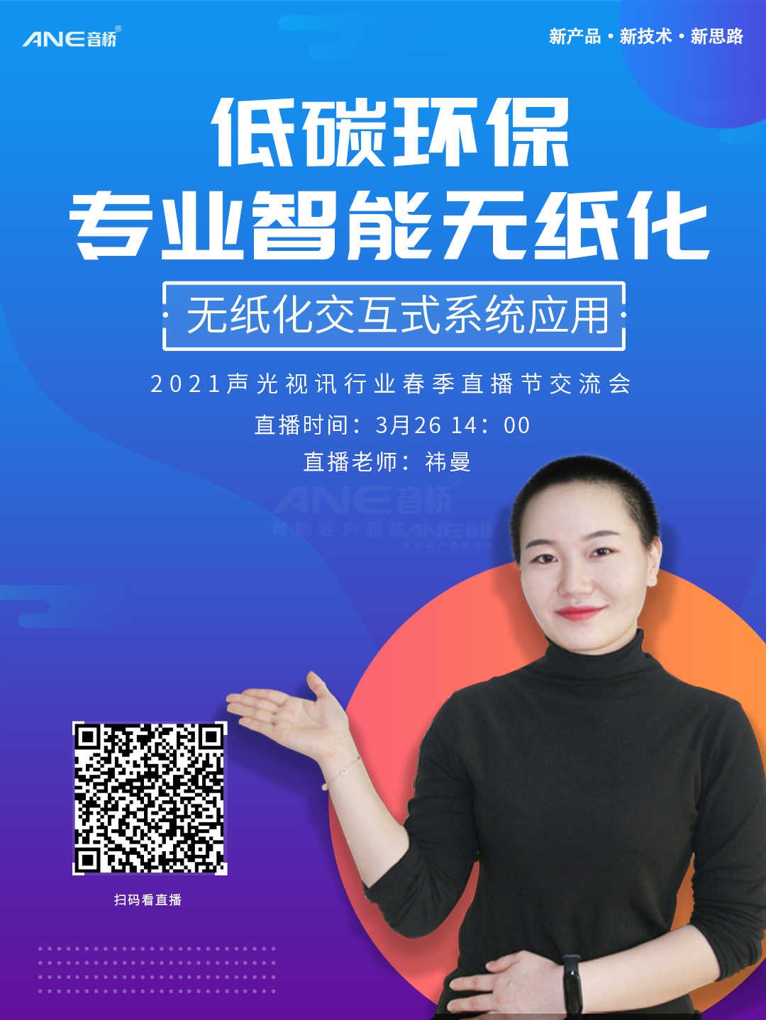 鎖定3月26日14:00慧聰網(wǎng)——音橋直播間!帶你深入了解ANE智能無紙化交互式系統(tǒng)應(yīng)用,解鎖高效便捷的數(shù)字化會(huì)議體驗(yàn),讓會(huì)議管理、會(huì)議后勤服務(wù)更簡單、會(huì)議分享更豐富,讓會(huì)議過程更高效便捷!
